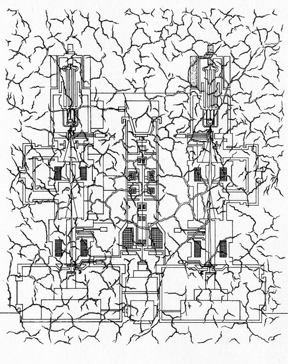 Katabolische Linien – Untersuchung der Risse in einem Fresko der Sixtinischen Kapelle durch Laser, Tusche, 1973, 27 x 22 cm