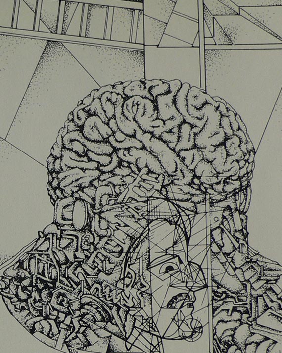 Metarealismus – Onanie der Zeit, 1976, Feder, Bürste und Tusche, 60 x 49 cm, Ausschnitt